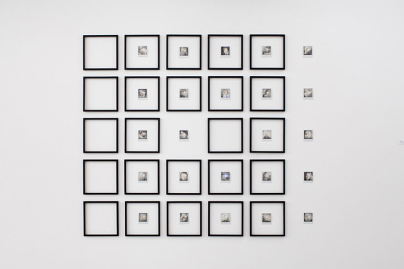 Remanence, in its first layer form, was created in 2013 for Künstlerhaus Bethanien in Berlin. It is comprised of twenty-five re-photographed out-framed and displaced portraits . The installation then travelled to Galerie E.G.P where it was inverted and turned into a wallpaper; then the wall of that show was cut out and travelled to LA where the polaroids were blown up and nailed onto the walls.