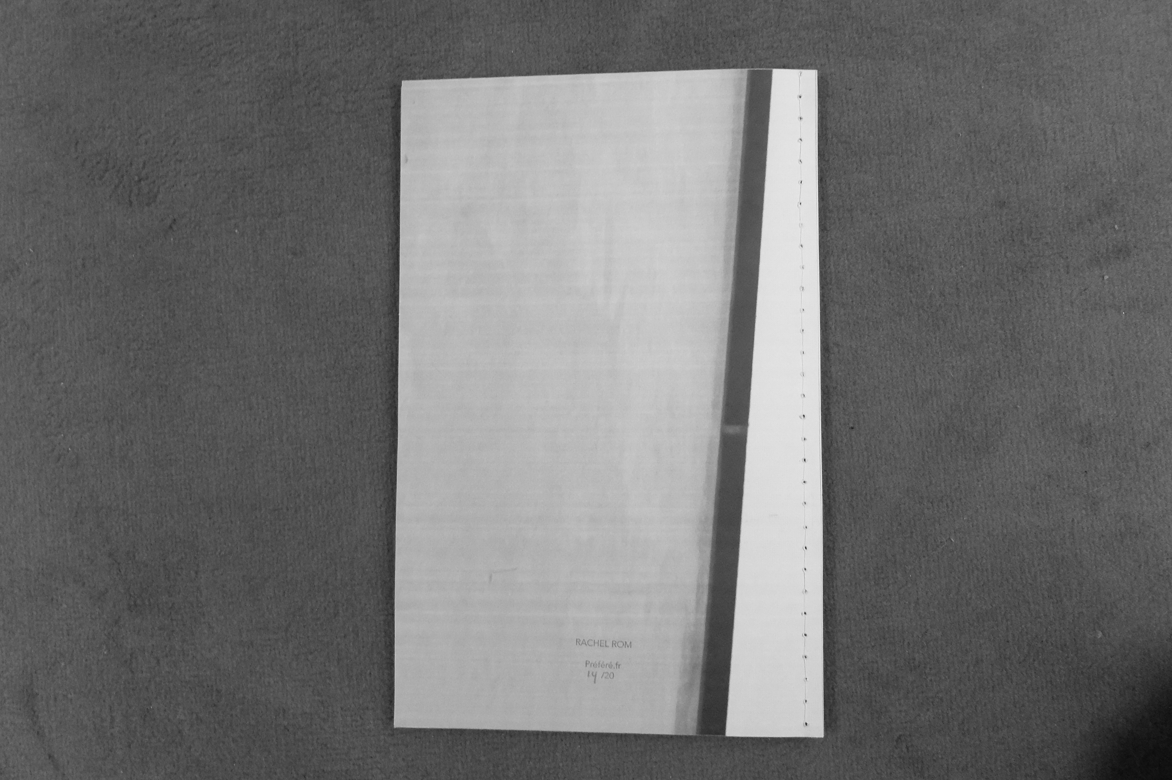 This is a book I made folding a wallpaper of the exhibition view of the Künstlerhaus Bethanien show that was inverted in the Rachel Rom show in paris. It was selfmade and edited by préferée.